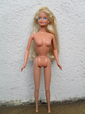 Urzekł mnie za to malunek twarzy i - zwłaszcza - kolczyki w kształcie małych różyczek. To dzięki temu jedynemu ocalałemu elementowi biżuterii rozpoznałam w moim trupku Songbird Barbie z 1995 roku.